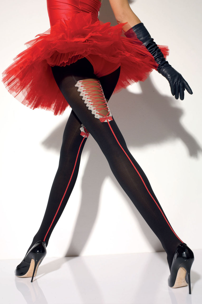 Opaque, matt microfibre tights. Embroidered back line and laces.