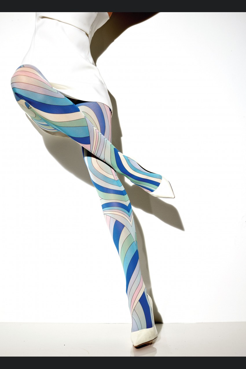 Opaque, matt, microfibre tights. Printed pattern.